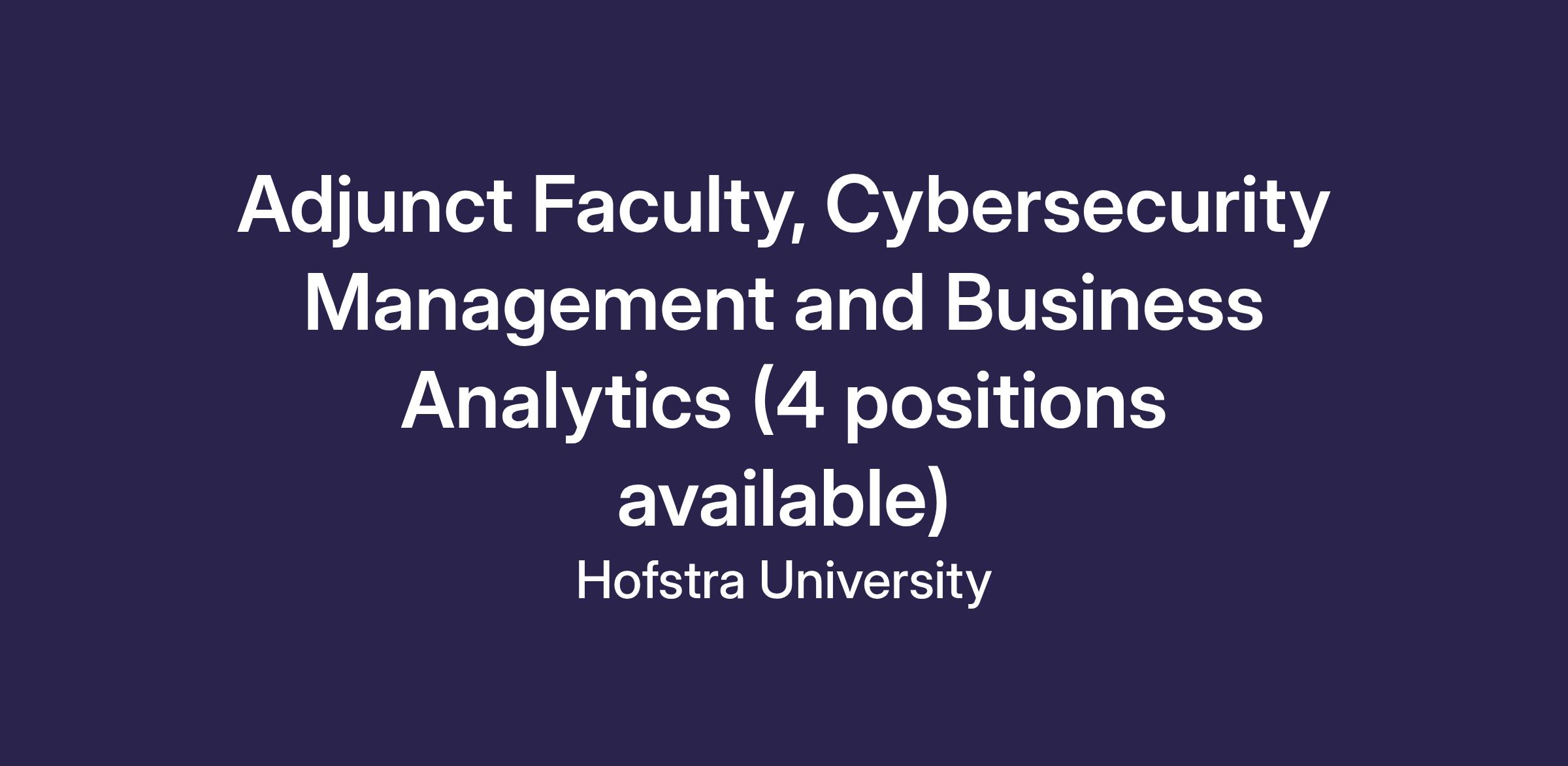Adjunct Faculty, Cybersecurity Management and Business Analytics (4 positions available)