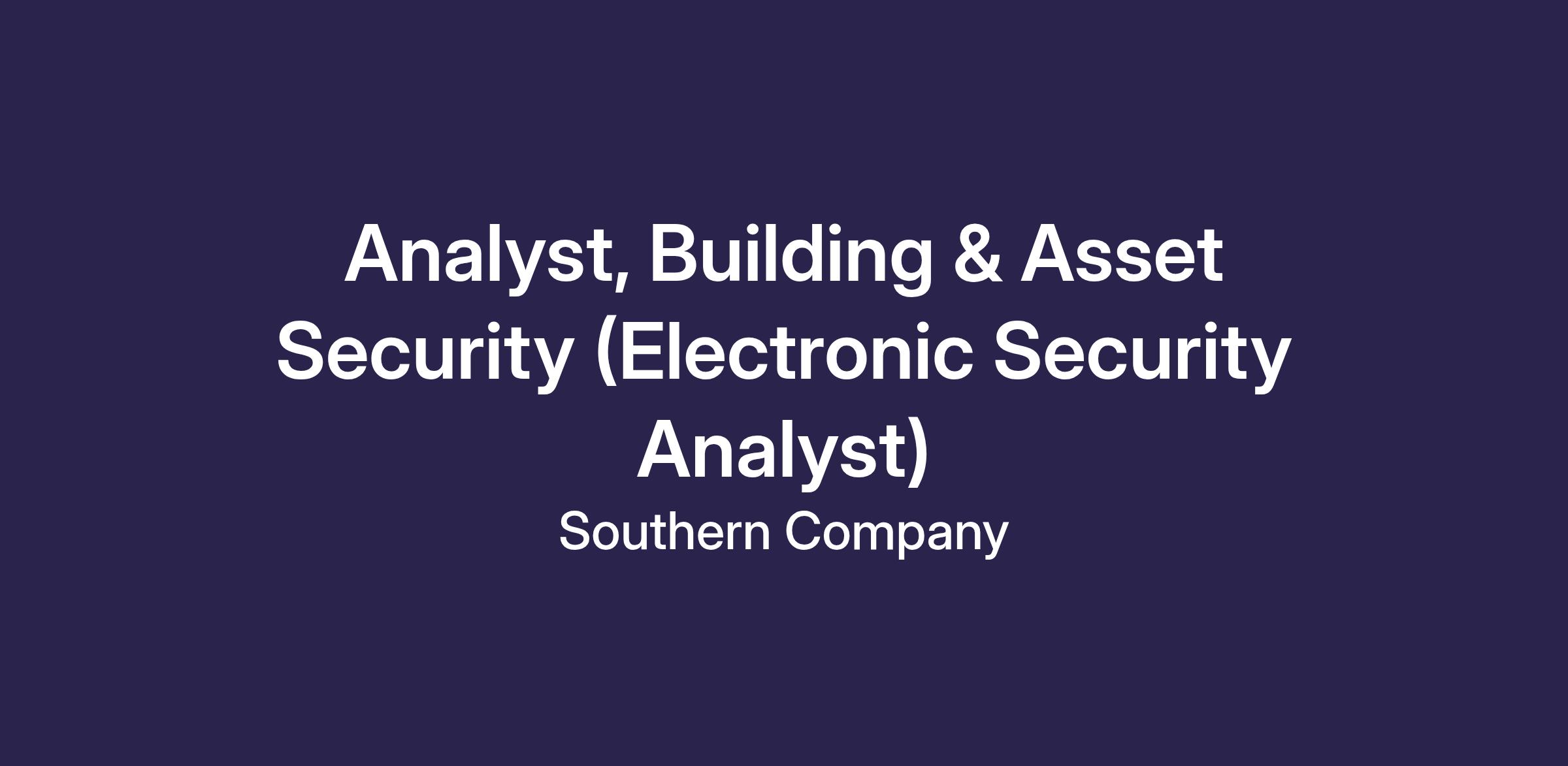 This position will coordinate with Southern Company internal and external contributors to plan, implement, install, and maintain electronic and physical security programs that are selected for the protection of company assets or mandated by regulatory requirements.