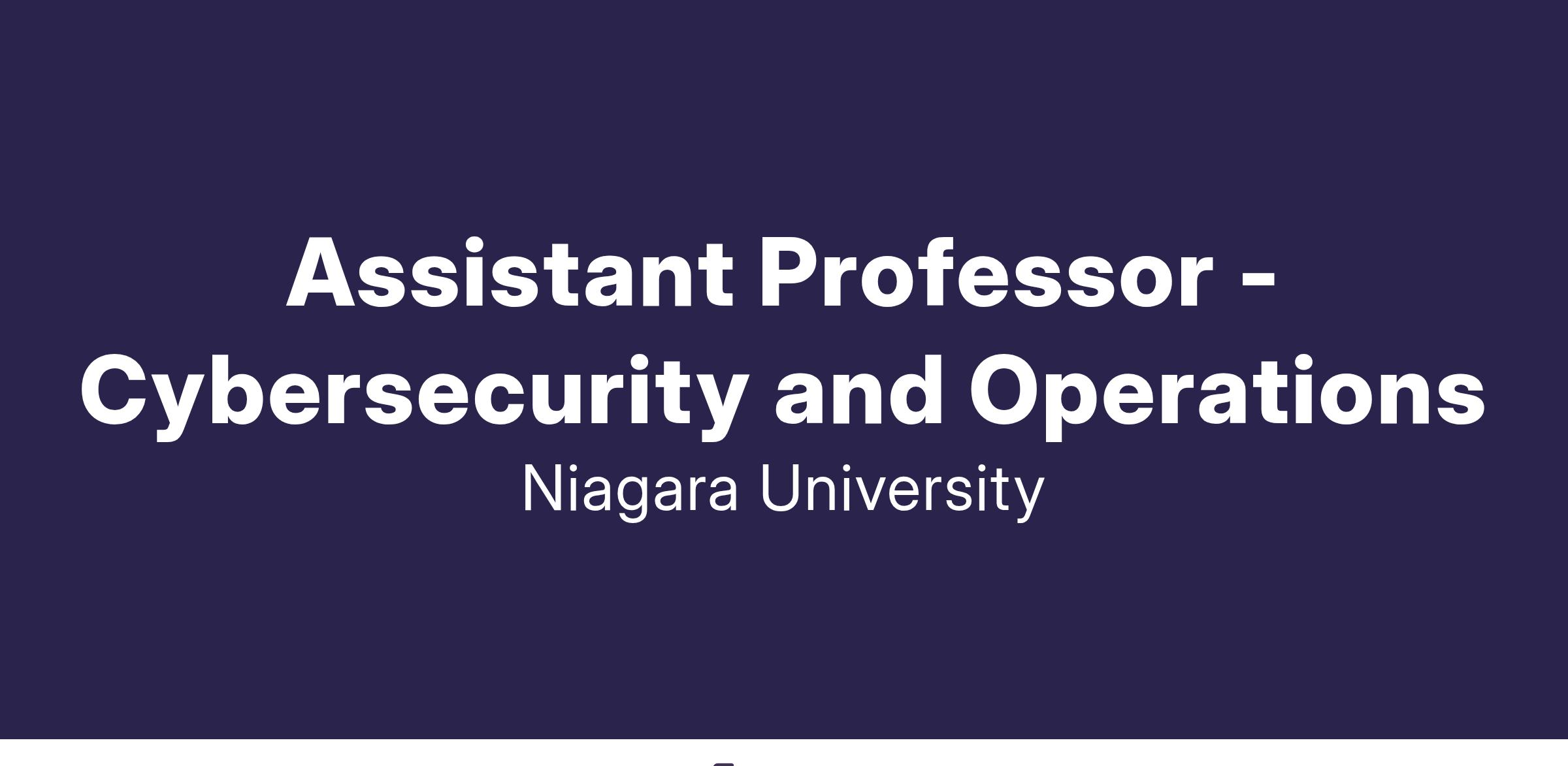 Niagara University's Department of Cybersecurity and Operations (CSO) invites applications for a tenure-track Assistant Professor position to start in the fall semester of 2024 in Vaughan, Ontario. As a tenure-track faculty member in CSO, the successful candidate will be required to teach three courses per semester (fall/spring), publish impactful scholarly research and participate in service (committees, advisement, etc.) to the department, college and university according to the NULTA Faculty Contract. Attendance at periodic meetings and holding regular office hours will also be expected. The courses assigned will be primarily at the graduate-level, though they may include other areas as department needs dictate - as well as a mix of traditional (face-to-face) and online formats.