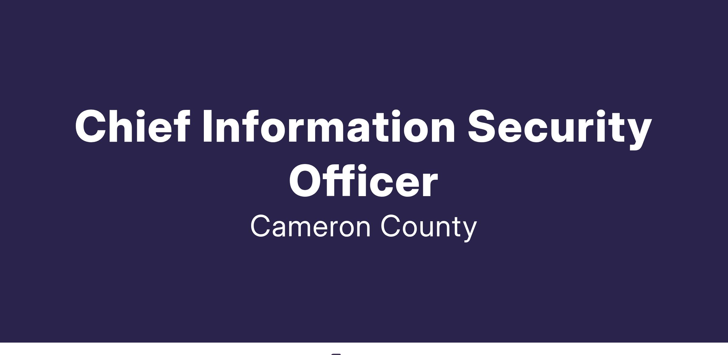 Serves under the direction of the Chief Technology Officer. Works collaboratively with other Cameron County Department Heads and Elected Officials to achieve the goals and objectives of the Commissioners Court. The Chief Information Security Officer (CISO) position requires staying up to date with security issues and working with the IT Director and Commissioner's Court to address concerns and results of the County's security. The CISO will proactively work with business units and other county partners to implement practices that meet agreed-on policies and standards for information security. The CISO should understand Information Technology (IT) and must oversee a variety of cybersecurity and risk management activities related to IT to ensure the achievement of business outcomes where the business process is dependent on technology. The CISO will be responsible for implementing and running the enterprise information security program not only related to confidentiality, integrity and availability, but also to the safety, privacy, and recovery of information owned or processed by the business in compliance with regulatory requirements.