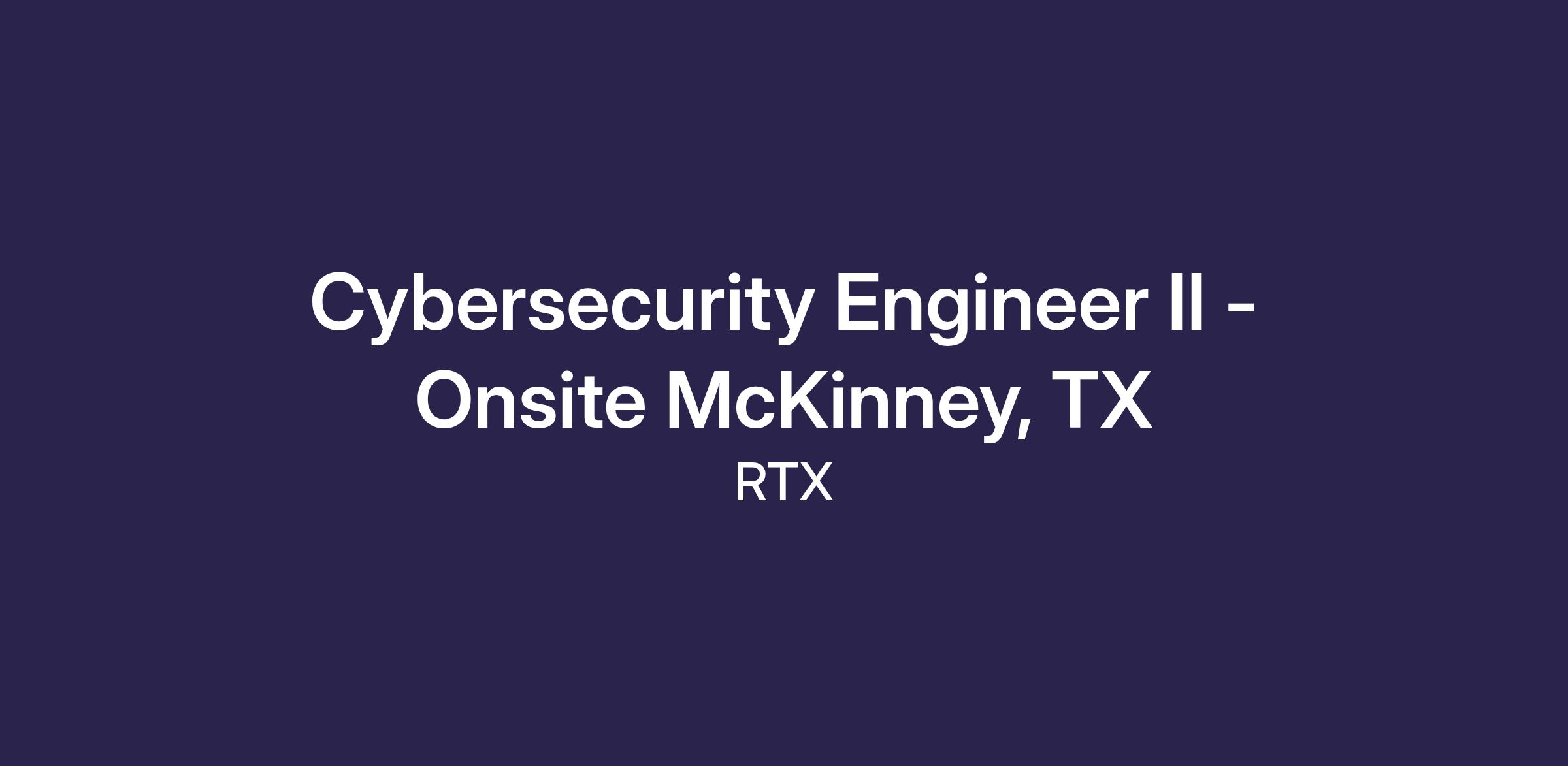 Cybersecurity Engineer II - Onsite McKinney, TX