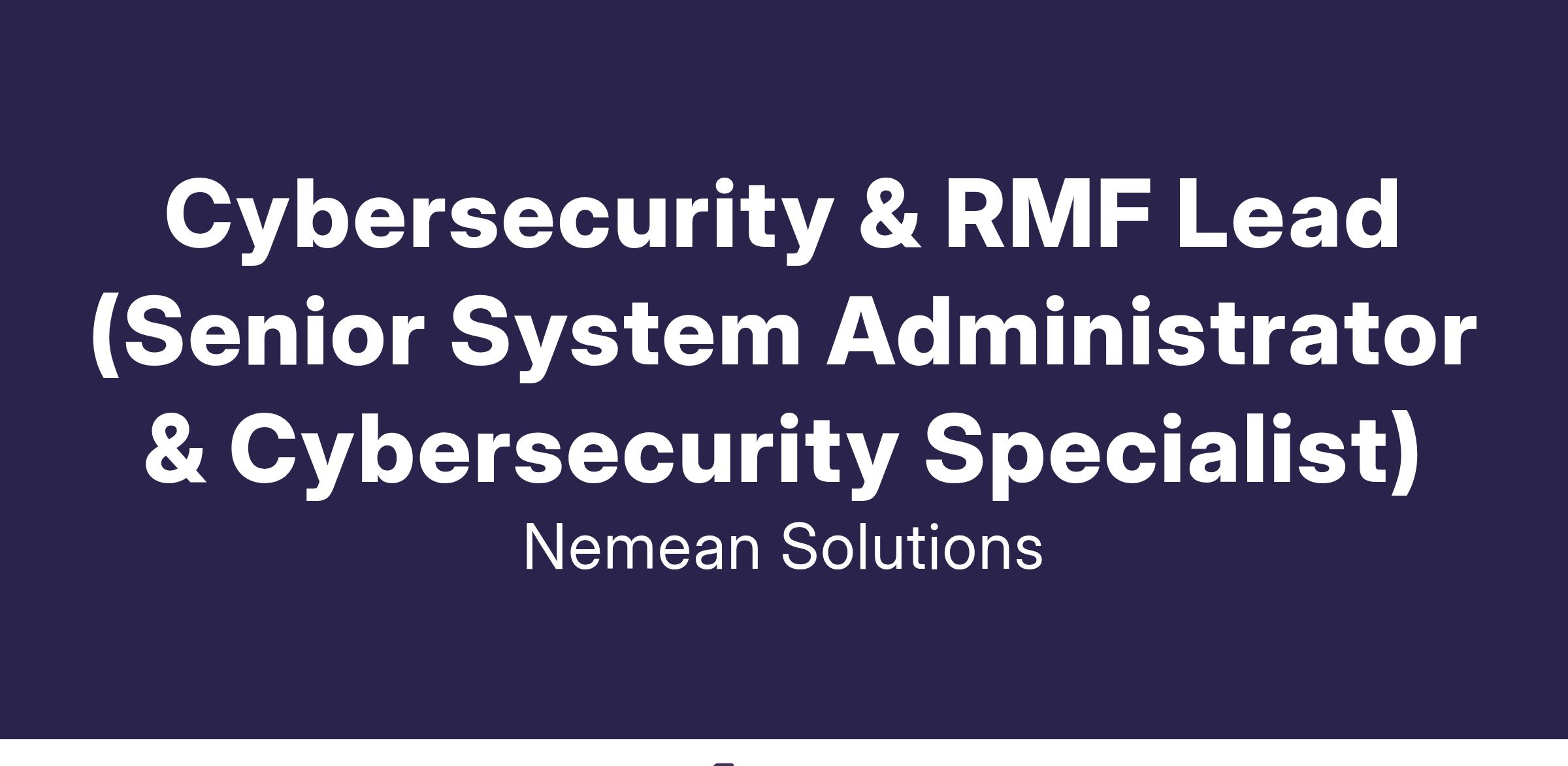 Cybersecurity & RMF Lead (Senior System Administrator & Cybersecurity Specialist)