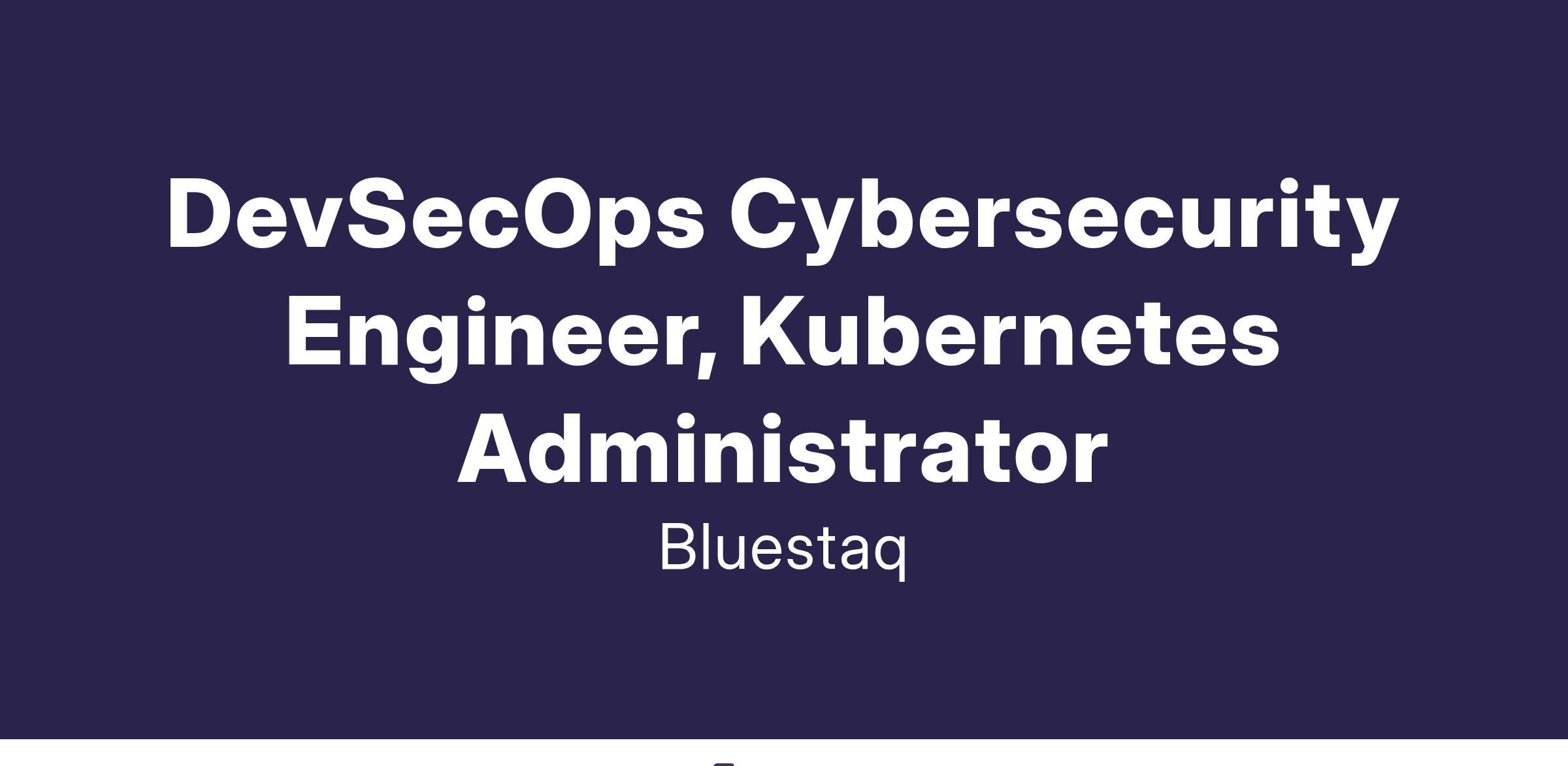 DevSecOps Cybersecurity Engineer, Kubernetes Administrator