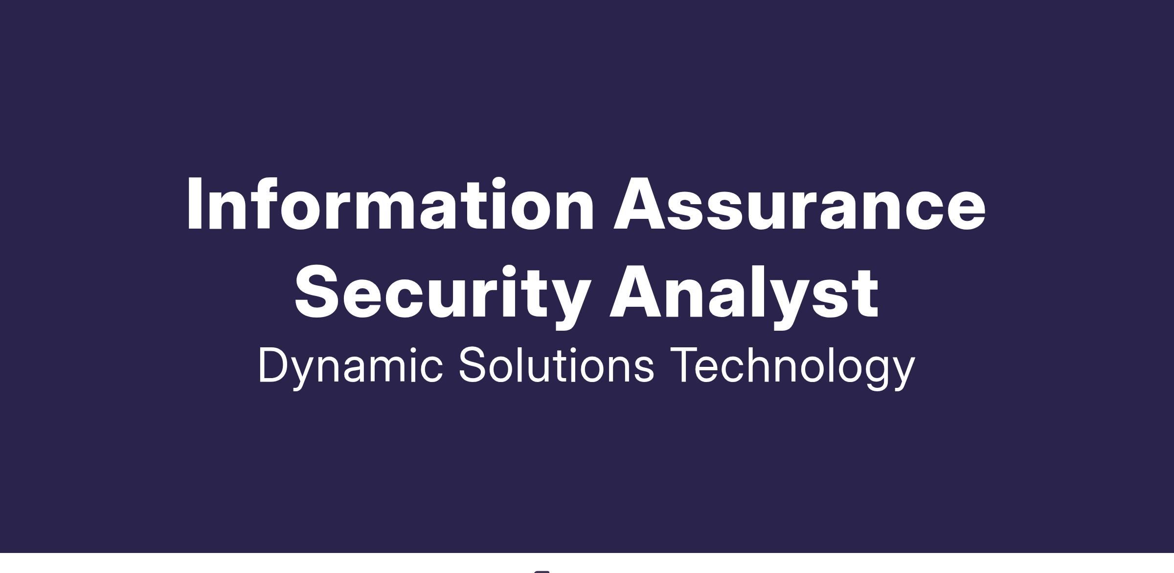 Dynamic Solutions Technology, LLC, a premier strategic services firm that meets IT and Service needs for commercial and government clients. We are is seeking a full-time Information Assurance Security Analyst to support DoD customer. This position is to provide support in the White Sands Missile Range (WSMR), NM area.