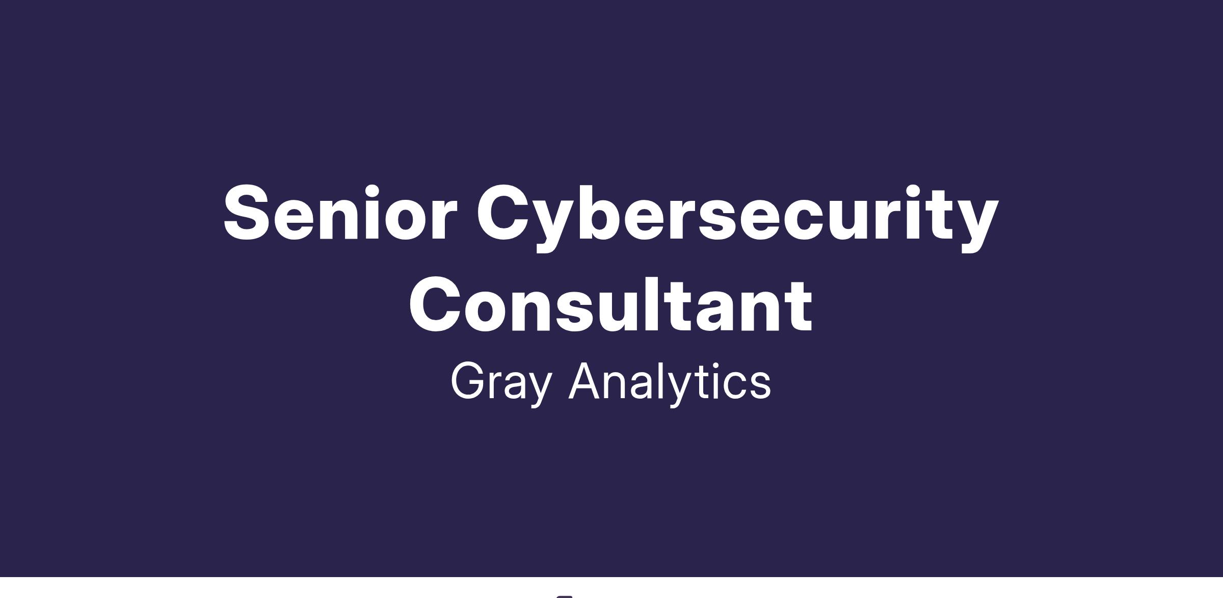 Gray Analytics is seeking a motivated and dedicated Senior Cybersecurity Consultant to assess, advise, and support commercial clients.