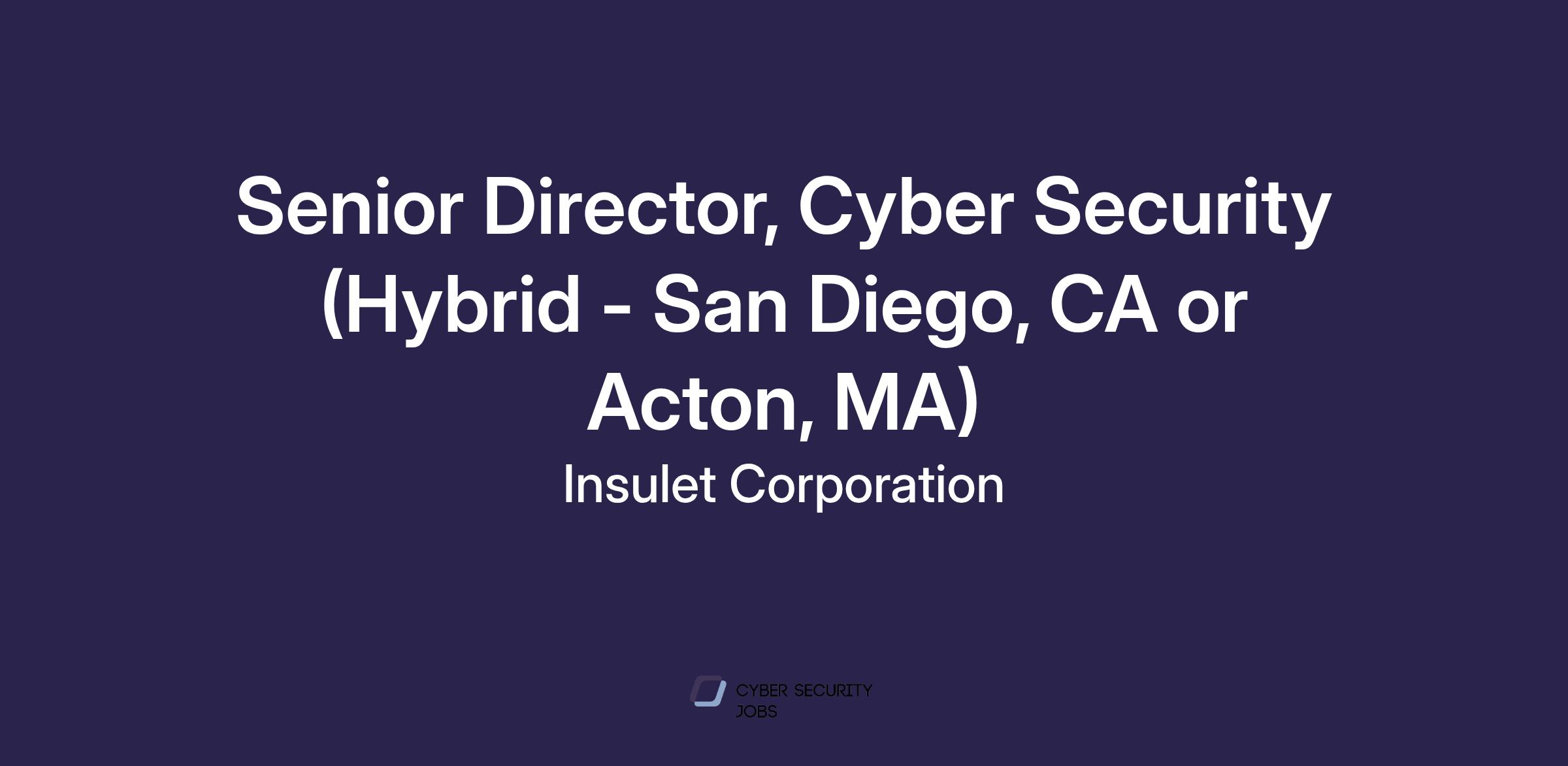 The Senior Director, Cyber Security reports directly to the Chief Information Security Officer and plays a pivotal role within Insulet’s Chief Technology Office (CTO). This executive will lead an global function that encompasses security operations, Posture management, Data Protection, and IAM. The role includes direct management of senior leaders and tight partnership with leadership across organization to support risk reduction efforts.