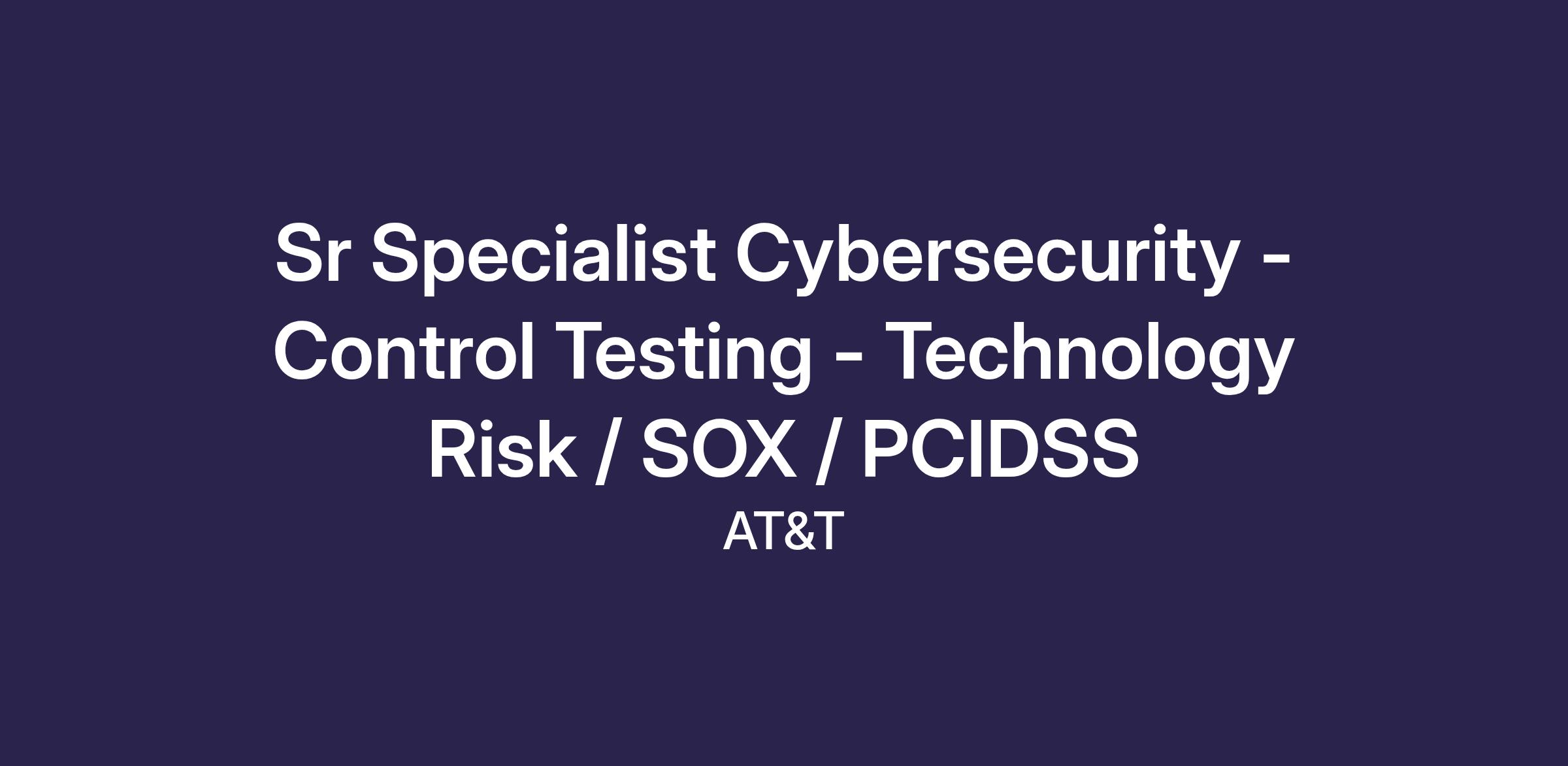 The Control Assurance (CA) team is part of Chief Security Office (CSO) and responsible for testing information technology and information security controls owned and operated by AT&T Technology Services (ATS), which includes CSO. This Senior Specialist joins the CA team as an individual contributor. This person,